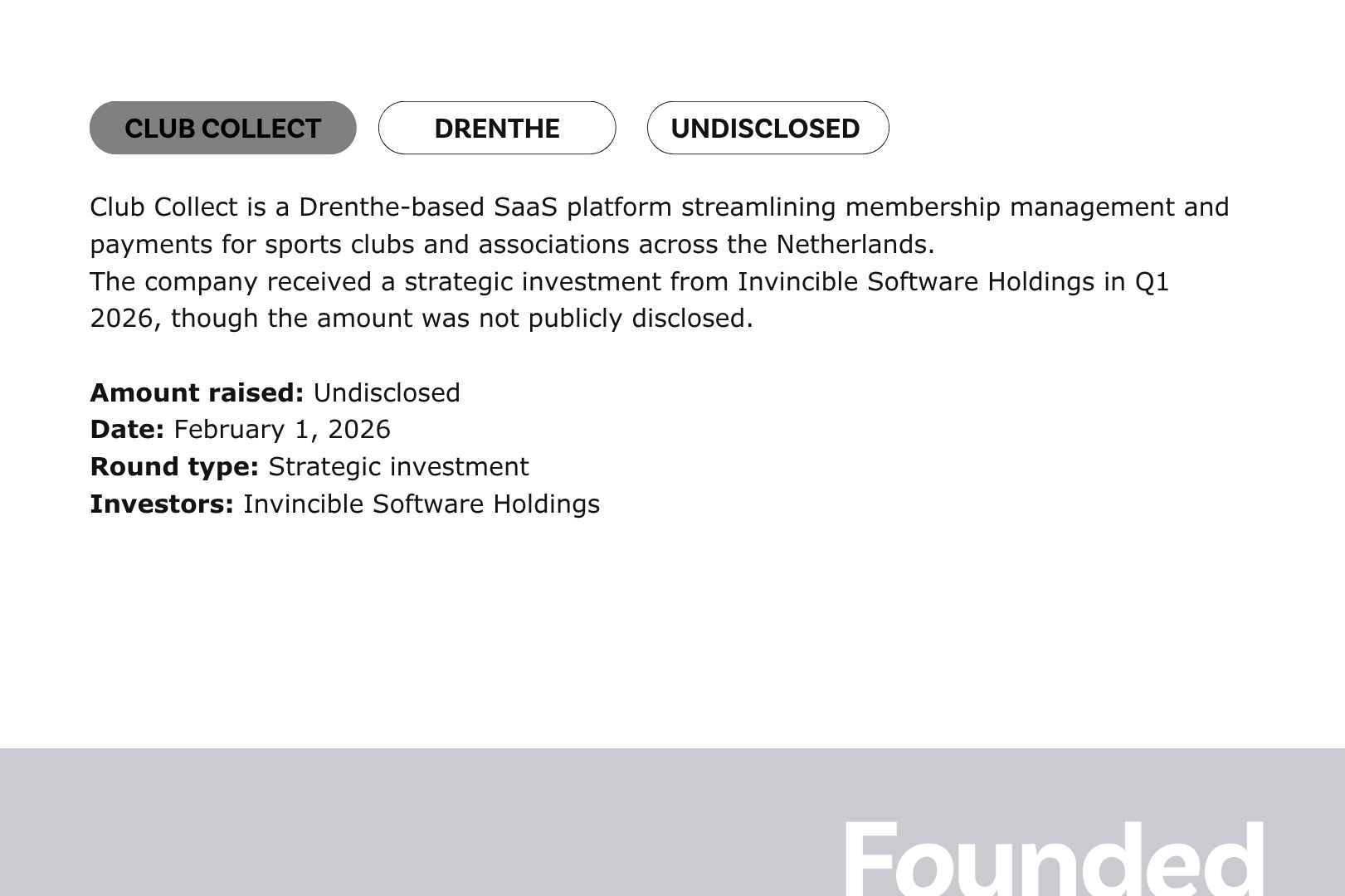 Ventures including Club Collect, EasyPay, Green Logistics Groningen, and Newthex also raised funds, but did not publicly disclose amounts.
