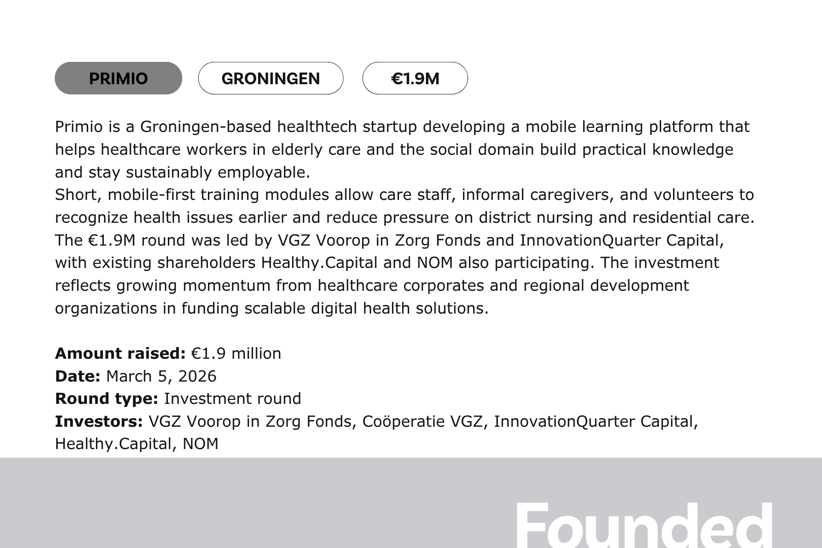 - Primio (€1.9M)