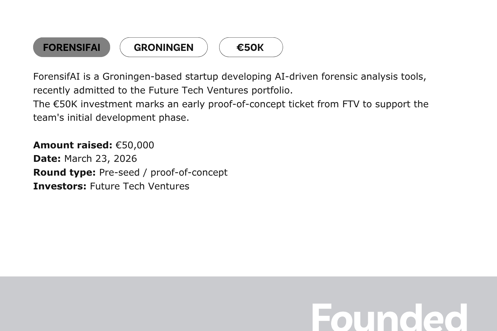 - ForensifAI (€50K)